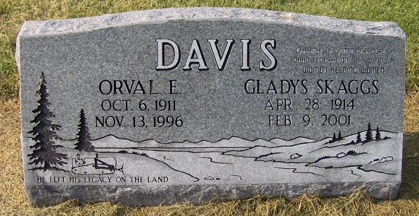 Orval E. Davis b.6 Oct 1911, d.13 Nov 1996 and Gladys Skaggs Davis b.28 Apr 1914, d.9 Feb 2001 |