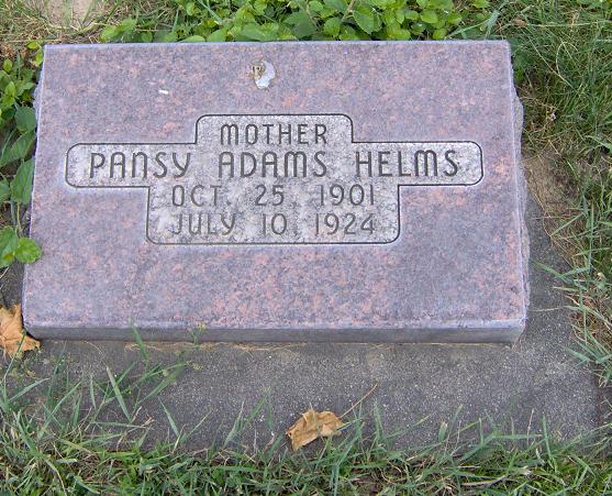 Pansy Adams Helms b.25 Oct 1901, d.10 Jul 1924 |