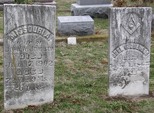 John W. Johnson b.~1830, d.~1865 and Missouri A. Johnson b.22 Mar 1829, d.17 Jan 1902 |