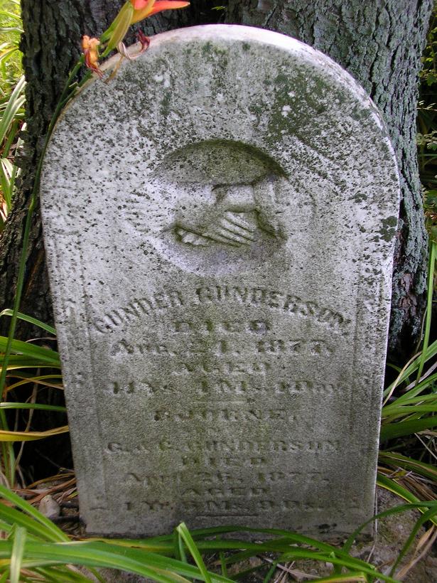 Gunder Gunderson b.~1836, d.21 Aug 1877 and G(?) Gunderson b.Oct 1875, d.26 Apr 1877 |
